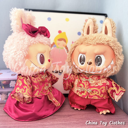 LABUBU 38cm 15inch The Monsters Plush Doll Clothes Handmade Traditional China Wedding Dress NO TOY