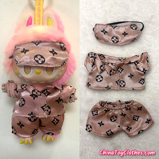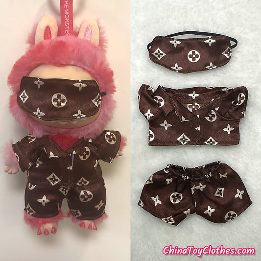 LABUBU 17cm The Monsters Plush Doll Handmade Clothes Brown VV Pajamas 3 pcs in a set Sleeping Robe NO TOY