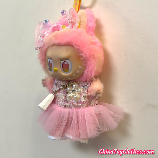 LABUBU 17cm The Monsters Plush Doll Handmade Clothes Pink Adorable Princess Dress NO TOY