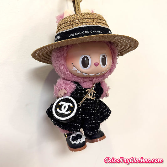 LABUBU 17cm The Monsters Plush Doll Handmade Clothes Black Elegant Lady Fashion Outfit With Straw Hat NO TOY