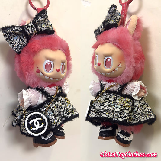 LABUBU 17cm The Monsters Plush Doll Handmade Clothes Elegant Black CC Lady Fashion Outfit NO TOY