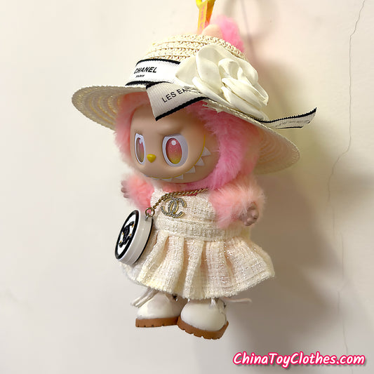 LABUBU 17cm The Monsters Plush Doll Handmade Clothes Elegant Lady Fashion Outfit With Straw Hat NO TOY