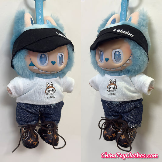 LABUBU 17cm The Monsters Plush Doll Clothes Gentleman Labubu Peak Hat T-Shirt 3 pcs in a set NO TOY