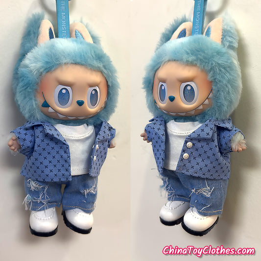 LABUBU 17cm The Monsters Plush Doll Replacing Clothes Gentle Man Leisure Suit Ripped Jeans NO TOY
