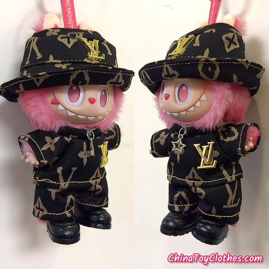 LABUBU 17cm The Monsters Plush Doll Clothes Black VV Fashion with Hat Outfit NO TOY