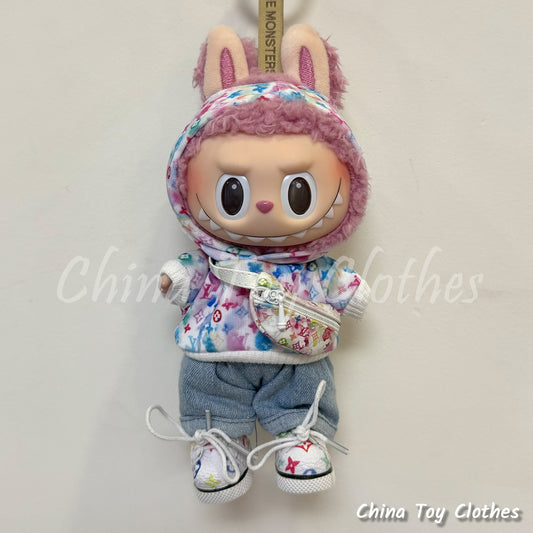 LABUBU 17cm 7inch The Monsters Plush Doll Replacing Clothes VV Tie Dye Fashion Hoodie Outfit NO TOY