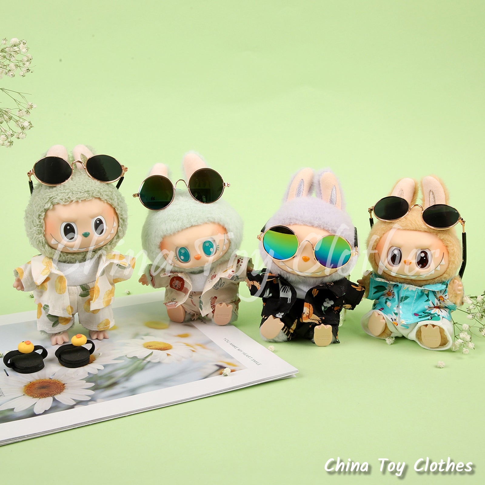 LABUBU 17cm The Monsters Plush Doll Clothes Sand Beach Sun Glasses Outfit NO TOY