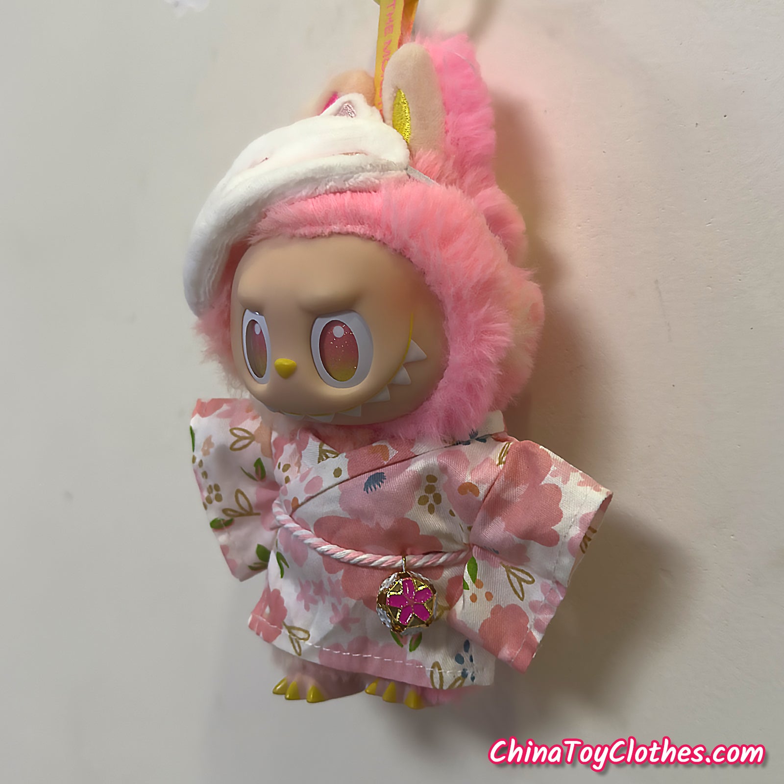 LABUBU 17cm The Monsters Plush Doll Handmade Clothes Cute Pink Comic Outfit with Mask NO TOY