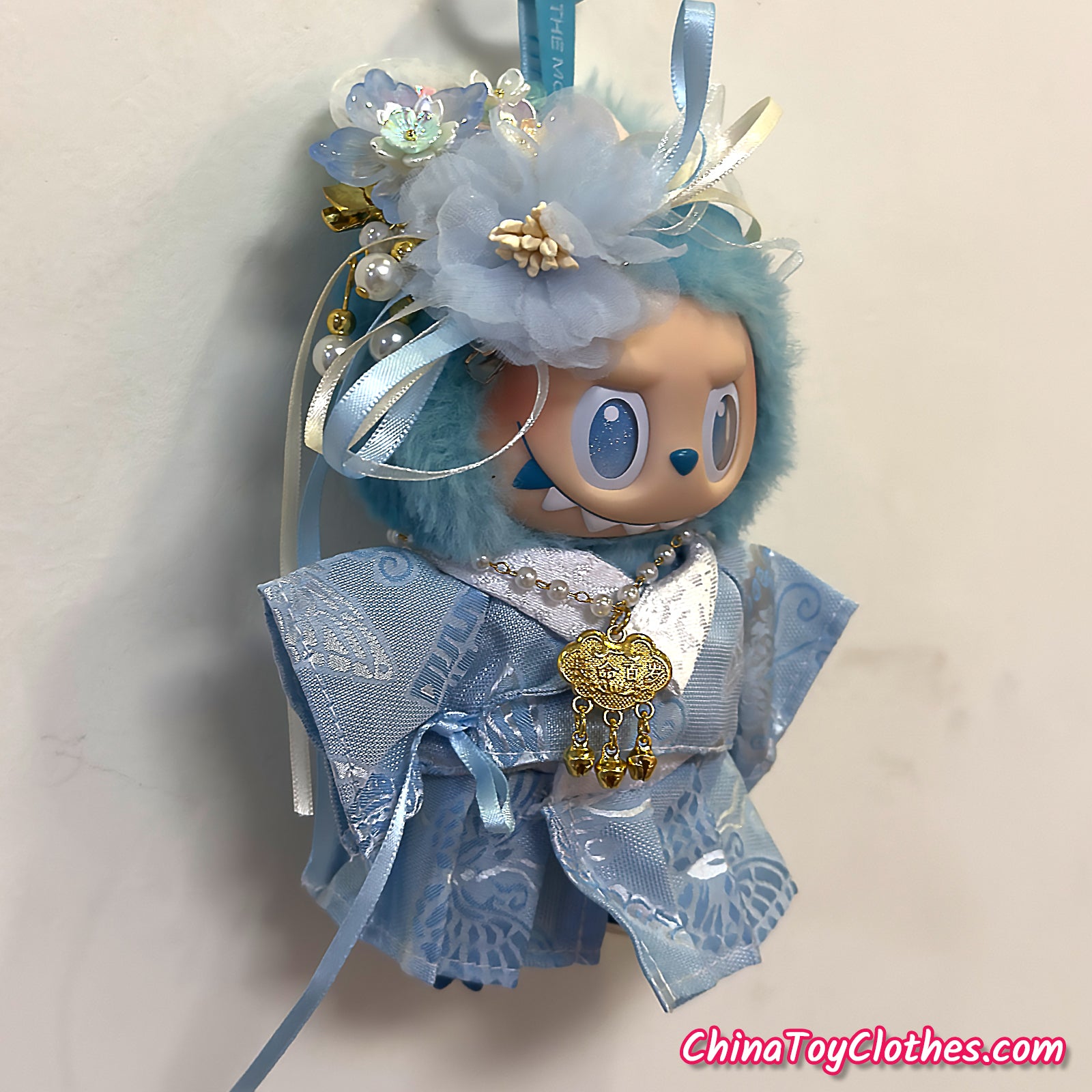 LABUBU 17cm The Monsters Plush Doll Handmade Clothes Blue Traditonal Han Dynasty Outfit NO TOY