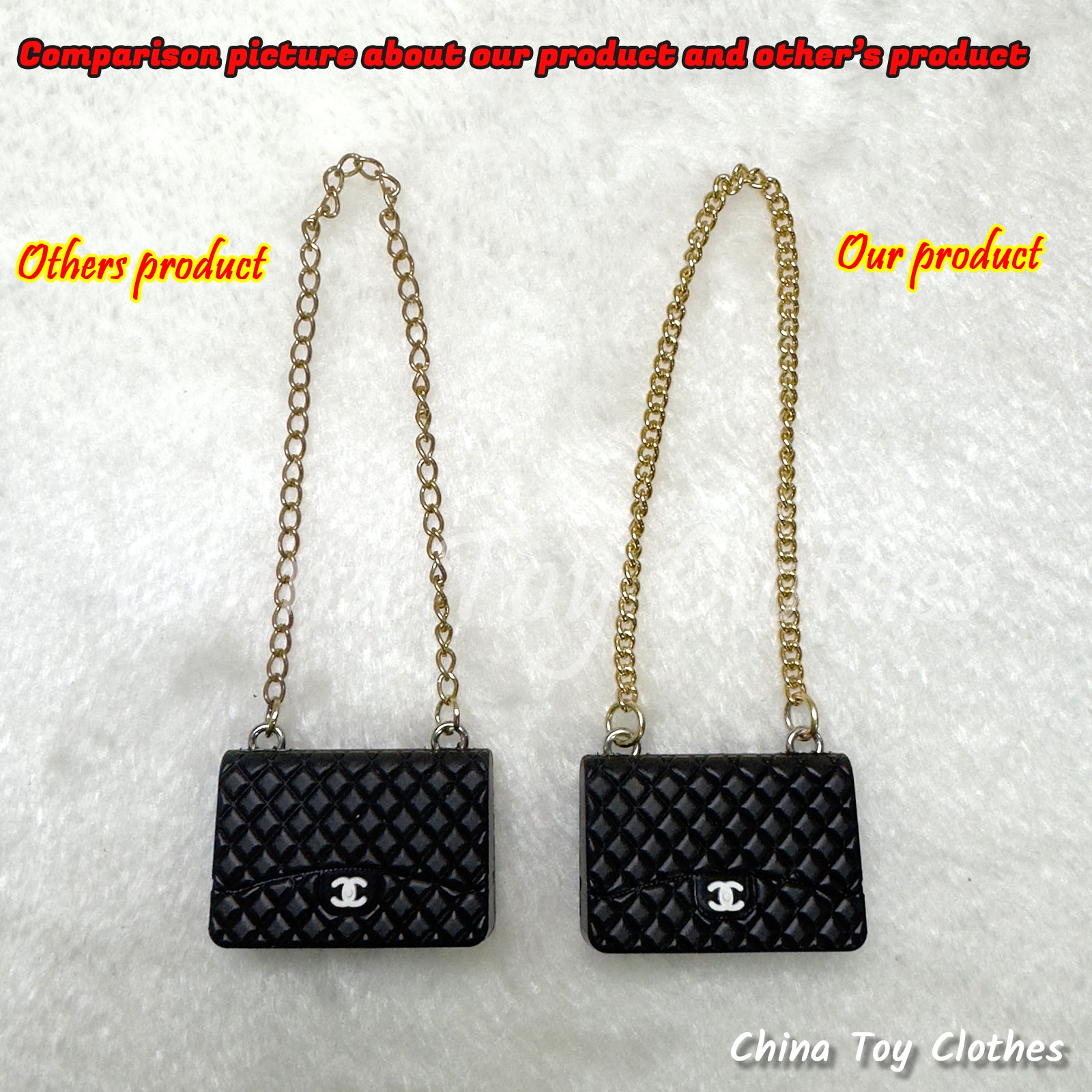 1. Unlike others which using the iron weak chain, we use more strong copper chain for the bag and it will not go rusty or drop the color easily. (you can find the difference on the comprison picture)